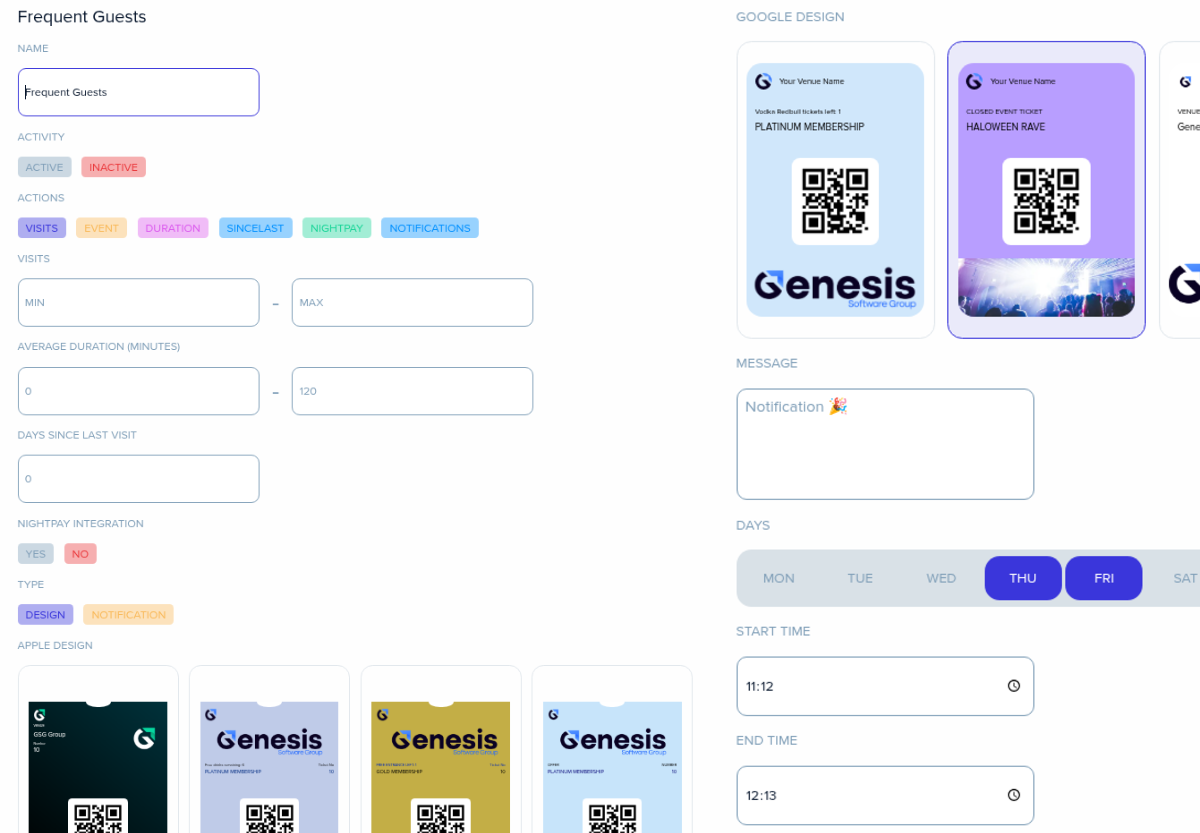 Automatiser alt – målret gæster efter besøg, sidste besøg, alder, køn og mere, og tilpas derefter ticket designs.
